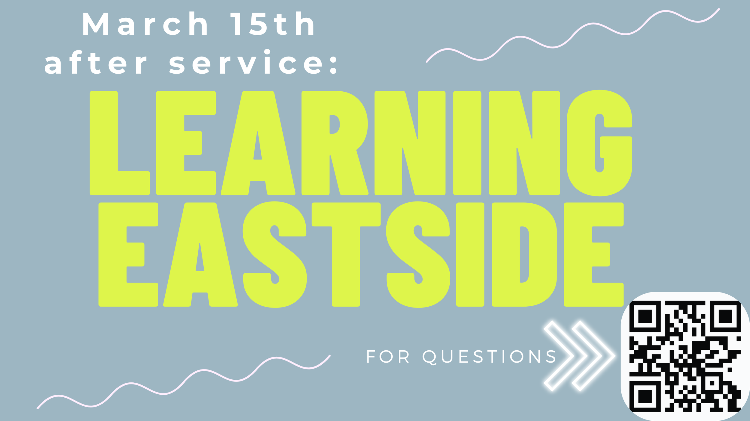 This is a time to for information learning about Eastside. There will be an opportunity for Questions and Answers. IF you have any questions about Eastside and what Eastside believes before you join our church- this time is for YOU!