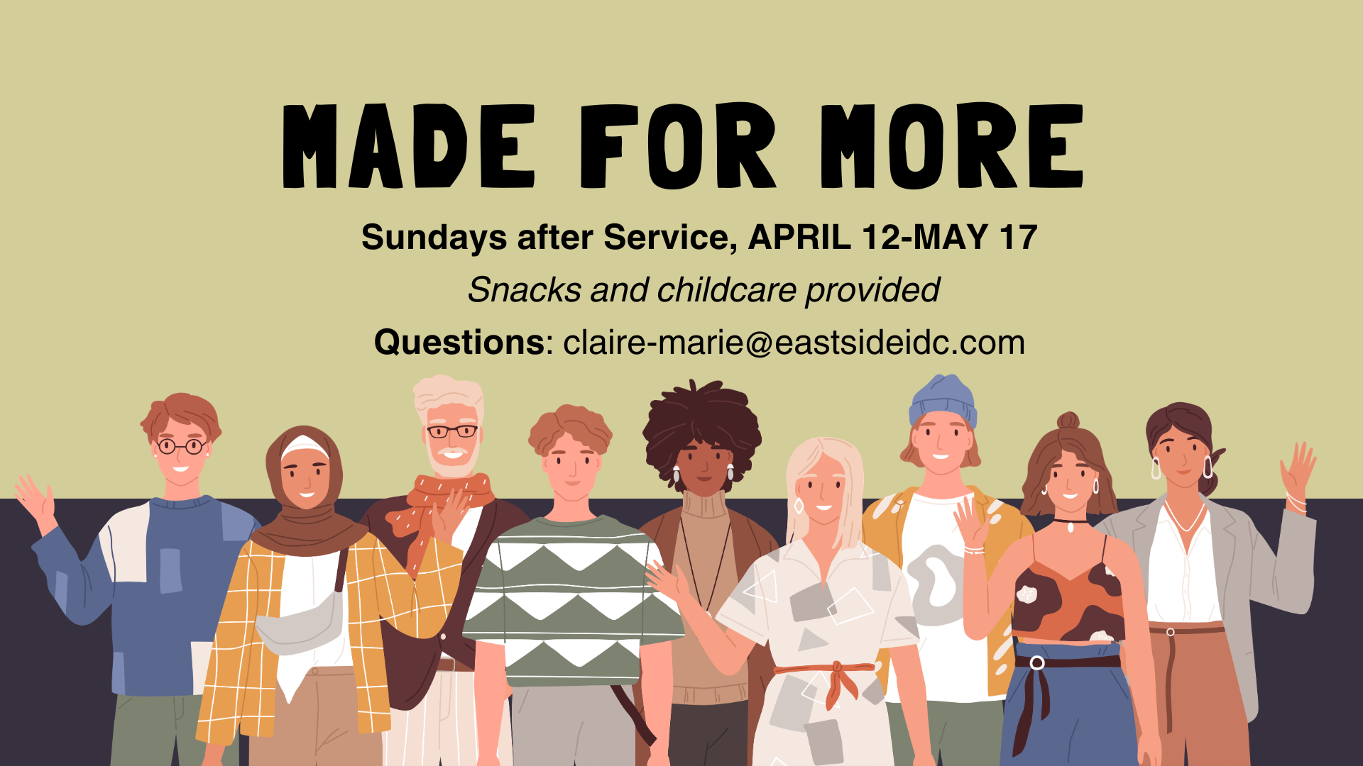 Scan the QR code for locations, times and to sign up or email us at communitygroups@eastsideidc.com